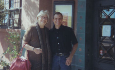 Photo: Molly Ivins and Richard Wolinsky outside KPFA, 2003.