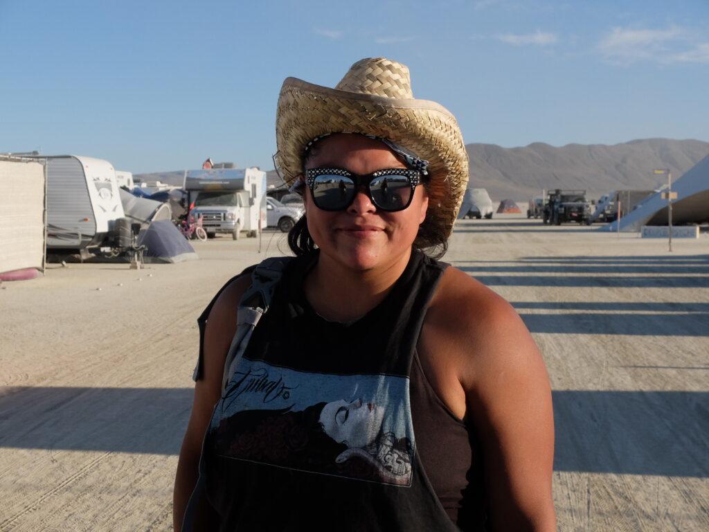 “The impact it has on the environment is number one, you know the trash,” she says. “People are courteous enough to clean up the playa because that’s the rules. But on the way out and on the way in, it’s more of an issue negatively because of all the trash that, you know, falls off the trailers, people leave behind when they pull over on the sides of the roads.”