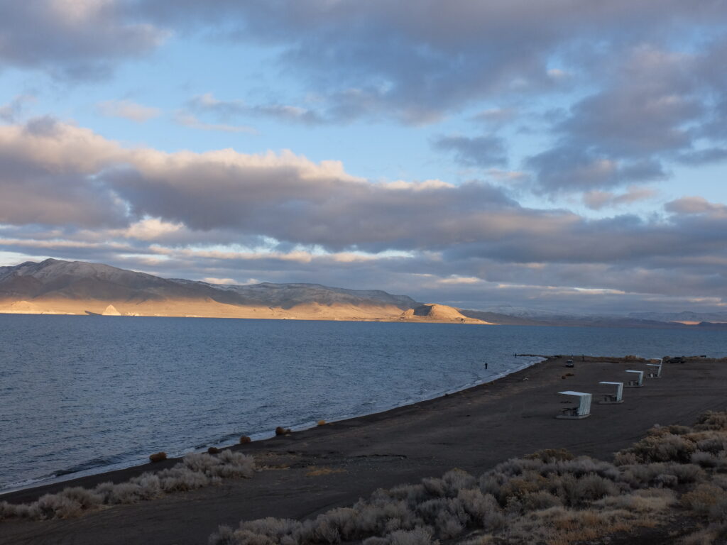 The landscape here is high desert, with shrubs everywhere – the type of place where tumbleweeds blow in the wind. This is the largest Native American reservation in Nevada. About a quarter of it is taken up by Pyramid Lake’s 200 square miles of blue water.