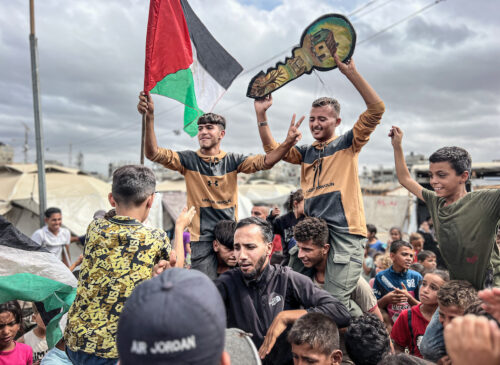 10.10.25 - 7:49pm By Nora Barrows-Friedman Palestinians celebrate in Nusairat Camp on October 9, 2025, following news of a new Gaza ceasefire deal