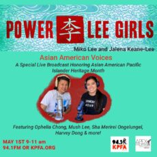 On May 1 from 9-11am The Sunday Show celebrated the first day of Asian Pacific American Heritage month by turning the reins over to Apex Express. Hosts, the Powerleegirls Miko Lee and Jalena Keane-Lee live broadcasted a series of conversations with some of the AAPI movers and shakers in the Bay and Beyond. Check it out: