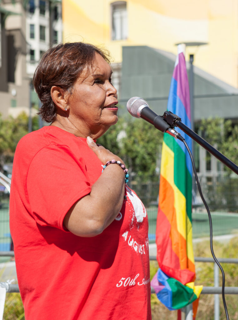 0:08 – Former host Salima Hamirani speaks with Felicia “Flames” Elizondo, a local lifelong trans activist who was a part of San Francisco’s 1966 Compton’s Cafeteria Riots, who lived her last three decades with AIDS.