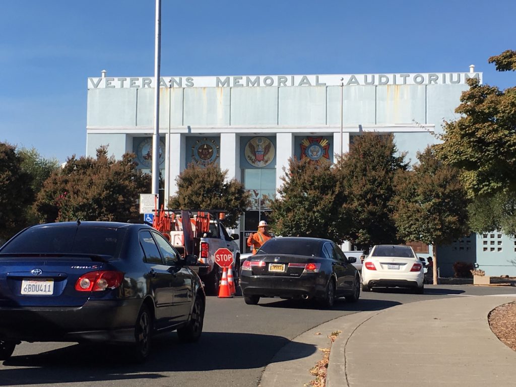 The Santa Rosa Veterans Memorial at 1351 Maple Ave was converted into a shelter for Kincade Fire evacuees